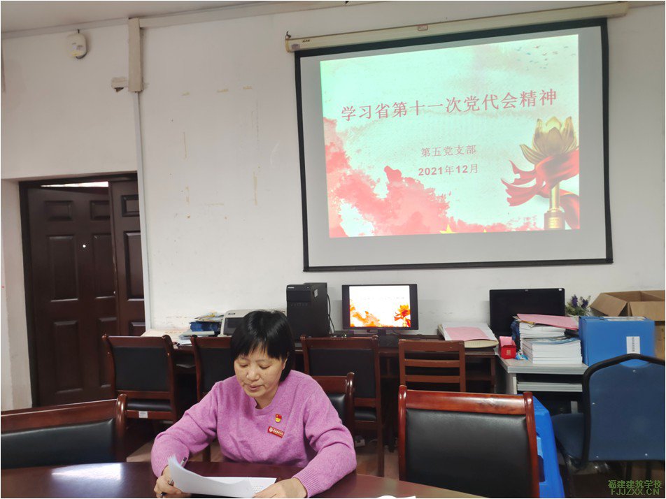 为深入学习贯彻中国共产党福建省第十一次代表大会精神,落实党史学习教育和“再学习、再调研、再落实”活动,12月16日下午第五党支部在学生科三楼会议厅召开主题党日学习会议。