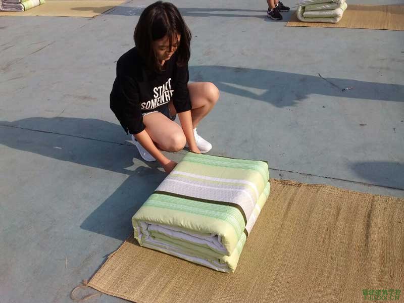 训练场上,同学们严于律己,敢于吃苦,奋力拼搏,表现出色。队伍集合,动作敏捷,队列操练,动作规范;训练场外,教官深入宿舍言传身教,悉心指导,手把手的教会同学们如何折被子、如何整理日常用品……9月5日下午14:30,16级各宿舍在学校操场上进行了一场别开生面的内务整理比赛,宿舍代表们动作迅速规范,双手一撑,左手手掌按着被子,右手手臂用力一划,原本皱着的被子瞬间变平整了,接着同学们双手协作,不一会儿功夫,原本平摊着的被子就“立”成了方方正正的“豆腐块”,许多同学连边角都不忽视,十分认真的整理被褥,最后将折好的被子统一放置在规定的位置,完全按照军队的标准要求自己。看着这些家里的“小公主”“小王子”们在这短暂的五天时间内取得如此大的进步,不得不让人为他们竖起大拇指!