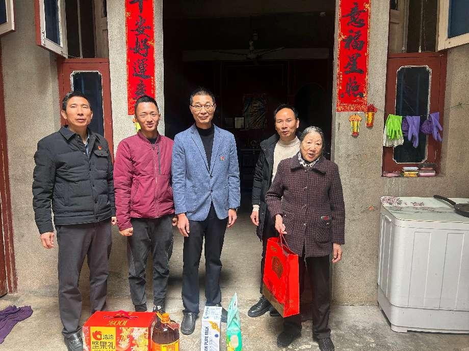 为持续开展“百校结百村”活动,1月22日,在新春佳节即将来临之际,我校党委委员、副校长蔡文镇,党委委员、副校长林修财,办公室副主任黄未辛一行赴连江县中麻村开展走访慰问活动,为当地困难群众送去温暖与关怀。