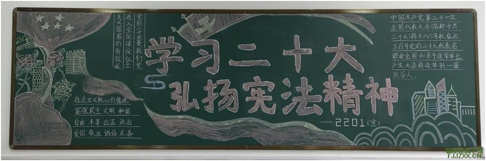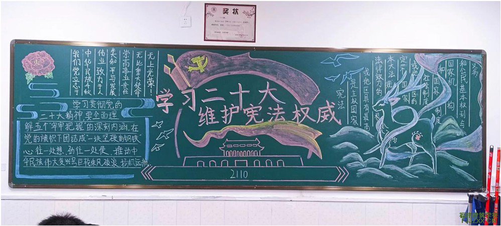 主办一期普法专题黑板报。各班围绕本次宪法宣传周主题,精心设计专题黑板报,朗朗上口的法制宣传标语、色彩艳丽的图文漫画,成为了宣传宪法知识的亮丽风景。