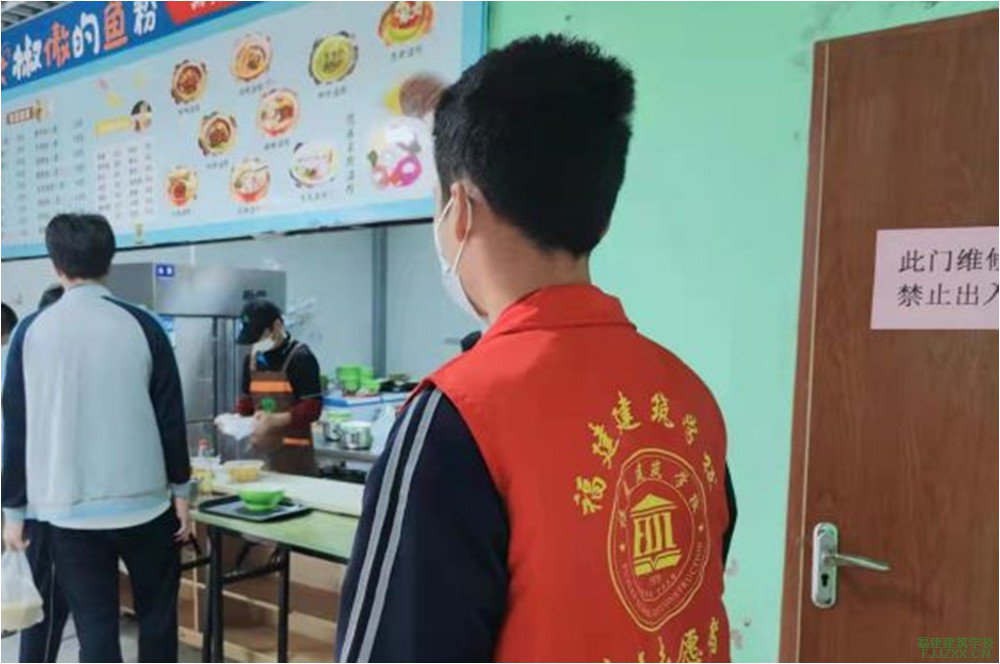 在校团委号召下,学生干部队伍自愿分组加入“匠心守护,战疫同行”志愿服务活动,志愿者们轮流值守,早早到达食堂巡逻,提醒同学们规范佩戴口罩,制止聚集就坐等违反防疫要求的行为。此次活动中,党团师生齐心协力,各司其职,坚守一线,为师生校园用餐筑起了一道安全防线,共同营造了文明有序的就餐环境,充分发挥了新时代青年的先锋力量。