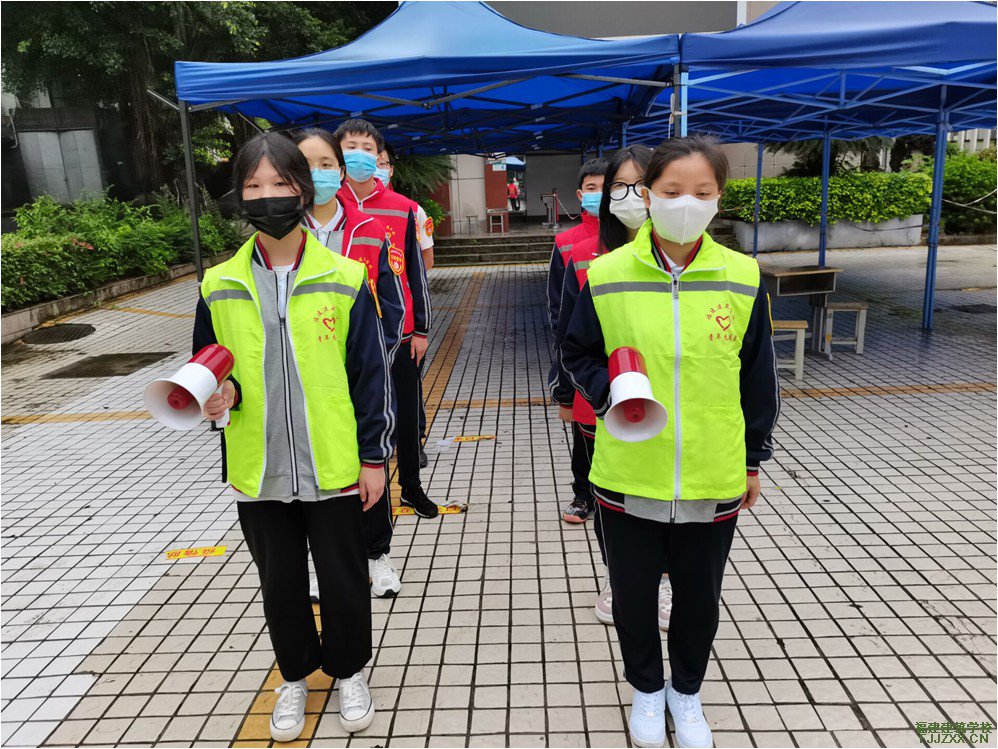 根据疫情防控要求,在韩士兵老师的带领下,学校环美部文明督导组学生干部手持喇叭,在早、中、晚三个时段开展防疫宣传督导工作,将佩戴口罩、不扎堆、保持一米间隔等健康防护理念深植师生心中,确保疫情防控宣传全覆盖、无死角、无盲区,切实筑牢疫情防控思想防线。