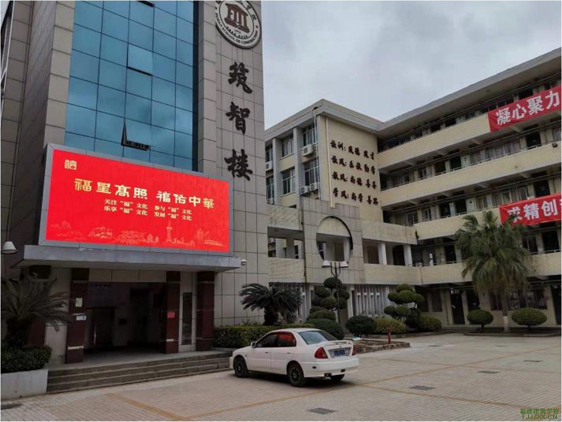 图为:2022年春节在我校显著位置的电子屏进行滚动刊播“福”文化