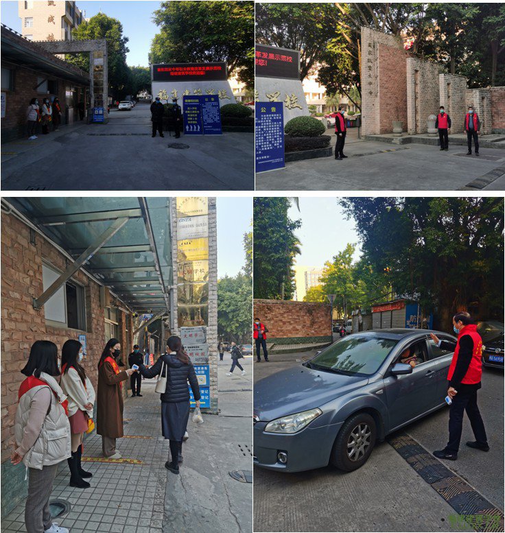 当天上午7:30,第二党支部全体党员在支部书记的带领下,佩戴口罩,披上志愿者绶带,于校门口多处设岗,协助校门口安保人员进行早高峰期间的交通疏导、健康码查验、体温测量、防疫提醒等工作。