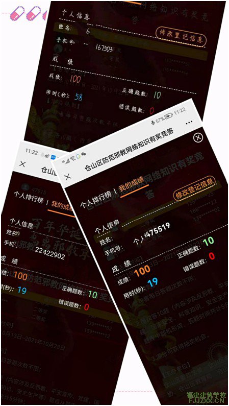 2021年10月学生参与仓山区防范邪教网络知识竞答