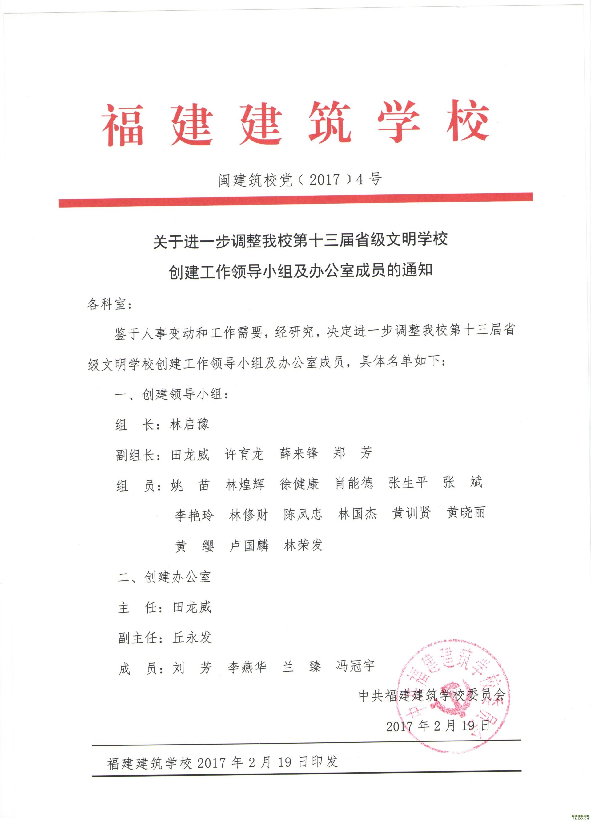 【文明创建小组】关于进一步调整我校第十三届省级文明学校创建工作领导小组及办公室的通知