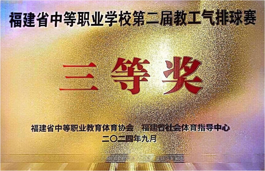 9月20日,福建省中等职业学校第二届教工气排球比赛在漳州正式开幕。我校组织了共计11人的队伍参赛,由副校长蔡文镇担任领队,林津老师担任教练。经过两日的鏖战,我校参赛队伍充分发挥团结拼搏精神,最终荣获三等奖。
