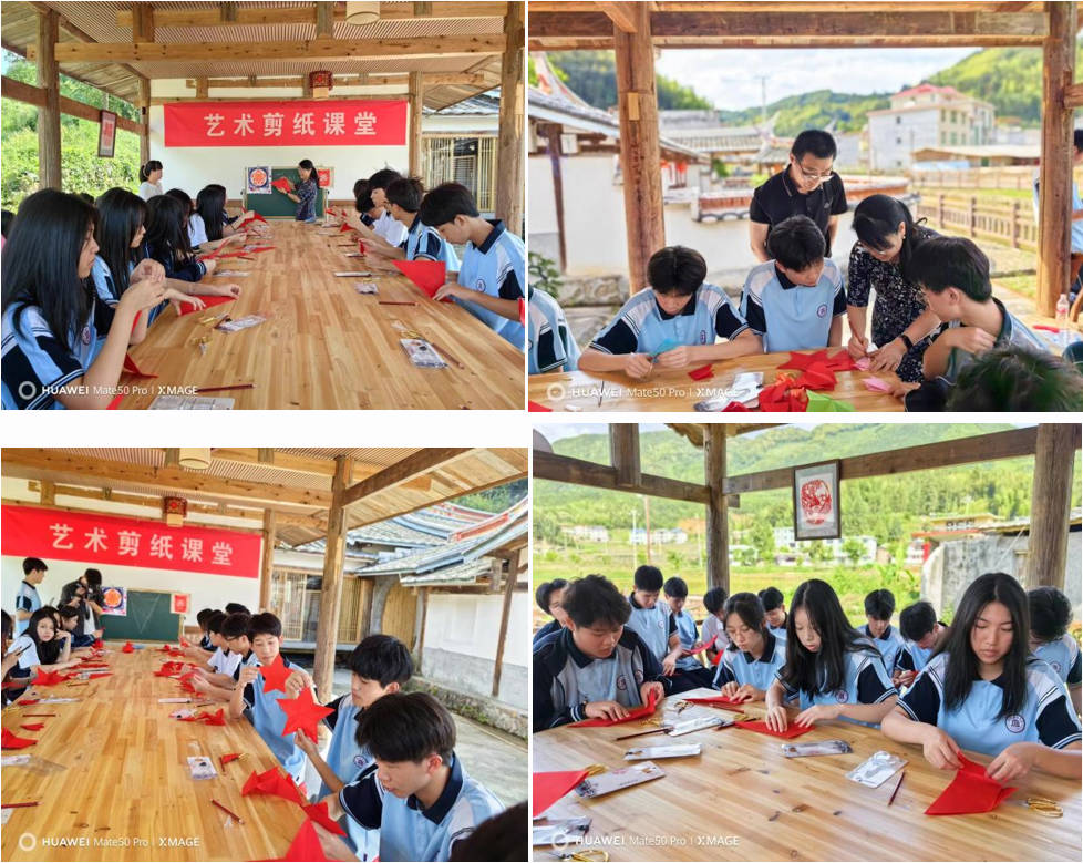 研学之旅从剪纸课堂开始,在了解了剪纸艺术的发展历程和其历史文化背景之后,同学们跃跃欲试,迫不及待地拿起剪刀和彩纸,在老师的耐心指导下从最初的略显笨拙到最后能够掌握剪纸技巧创作出自己的作品,同学们创意和热情充满整个课堂。