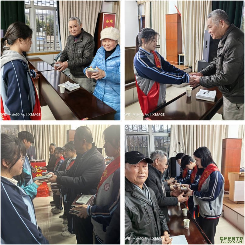 3月11日,在福州传统节日拗九节来临之际,我校团员志愿者参加了学校党支部开展的“铸牢中华民族共同体意识暨‘拗九节’感恩教育”主题党日活动。活动中,团员志愿者们为劳光村和我校关工委老同志们送上了热气腾腾的拗九粥并向在场的老同志们表达了感恩之情。