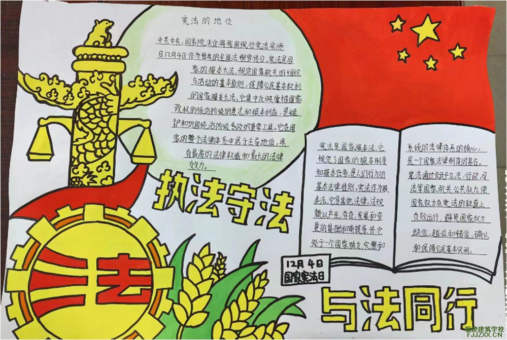 为全面学习贯彻党的二十大精神,深入学习贯彻习近平法治思想,推动青少年宪法学习宣传教育常态化长效化,根据《福建省教育厅办公室关于举办第八届全省学生“学宪法 讲宪法”活动的通知》及《福建省教育厅办公室关于开展2023年教育系统“宪法宣传周”系列活动的通知》,福建建筑学校开展了系列宣传教育活动。