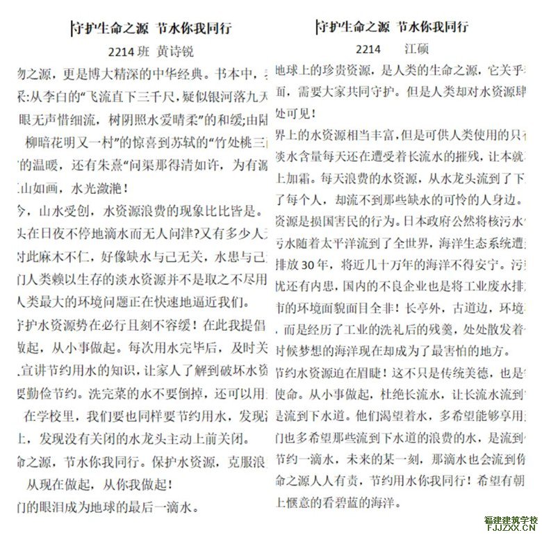 校团委积极开展《守护生命之源 节水你我同行》作品征集活动,共收到近百幅学生的画作和征文作品。同学们通过自己的画笔和文字生动形象地表达了对于水源重要性的认识,同时对守护生命之源发出号召:节水行动,你我同行。