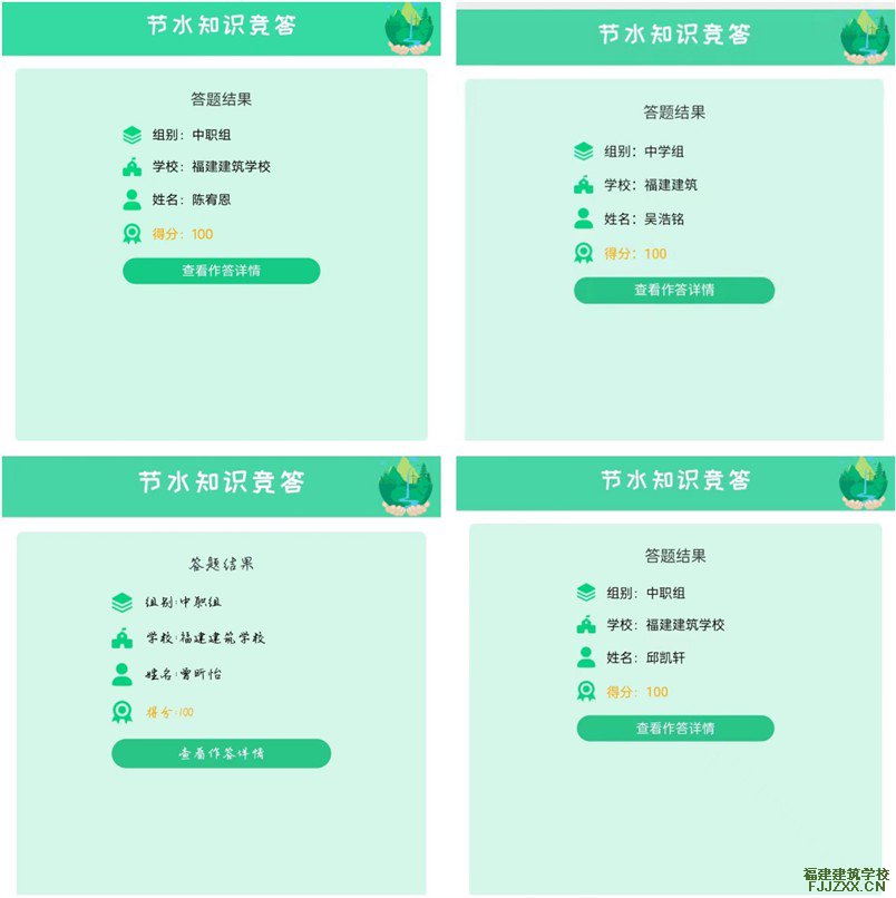 宣传活动期间,全校2000多名学生参与了“节水知识学一学”线上答题,通过知识题库,同学们对水源的重要性有了新的认识,进一步增强了学生节水意识。