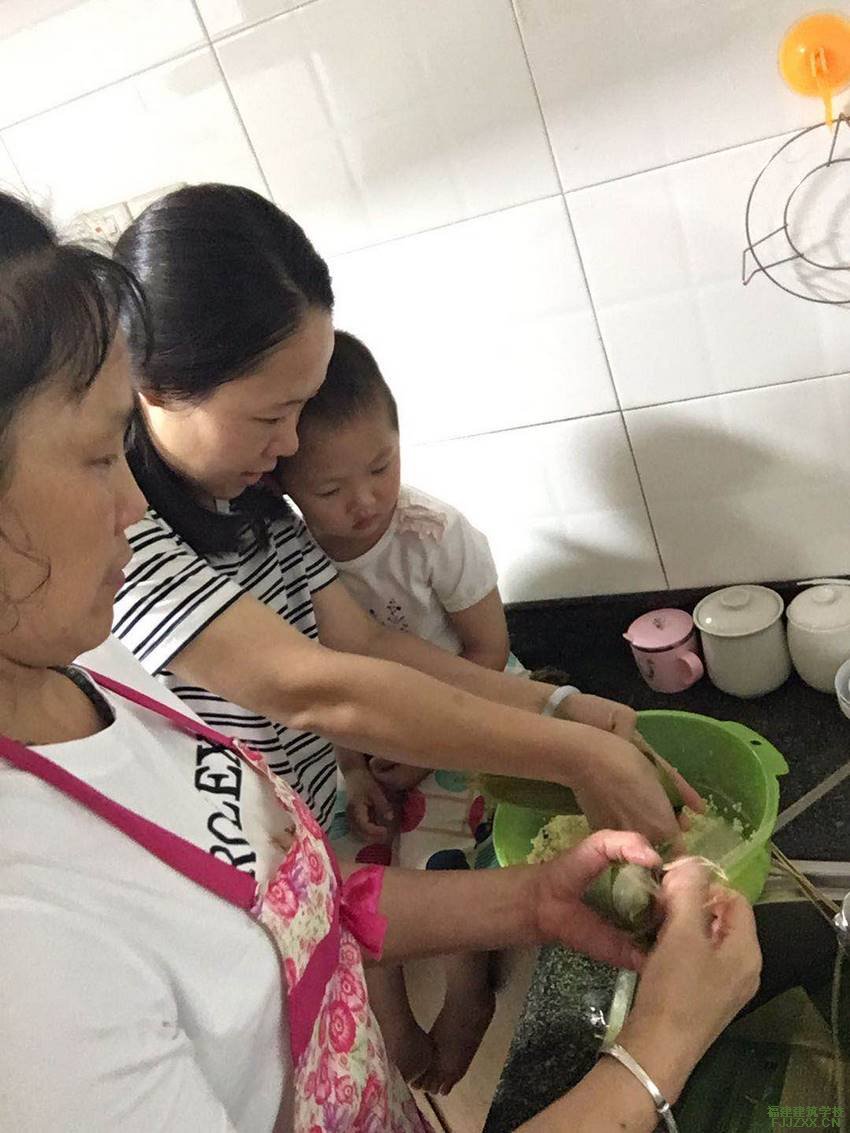学校教师、同事在家中包粽子