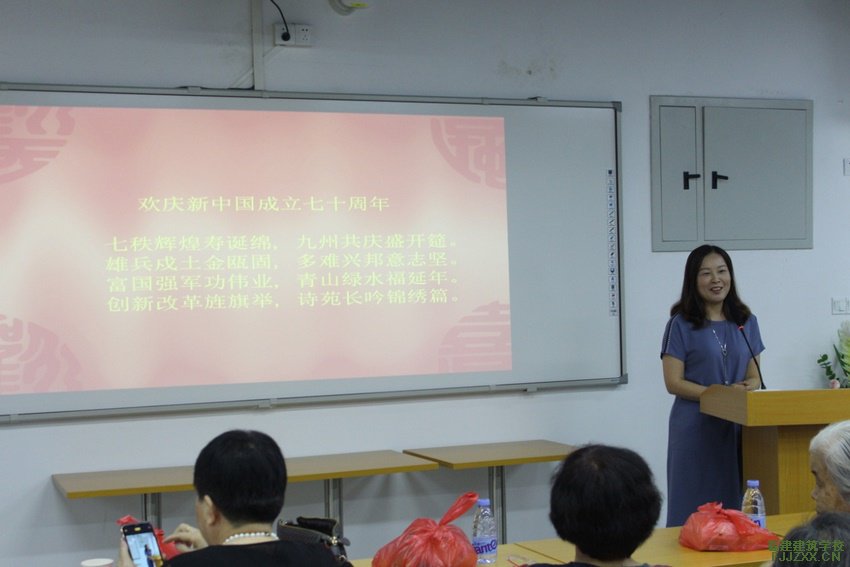 副校长、工会主席郑芳代表校工会,对一向支持学校工作的离退休老同志表示衷心的感谢,并致以节日的祝福。郑副校长表示,“学校的一草一木都浸透了你们的汗水、饱含着你们的深情,看到你们矍铄的精神和幸福的笑脸,感到由衷的高兴”,希望老同志健康长寿,校庆都回校看看。