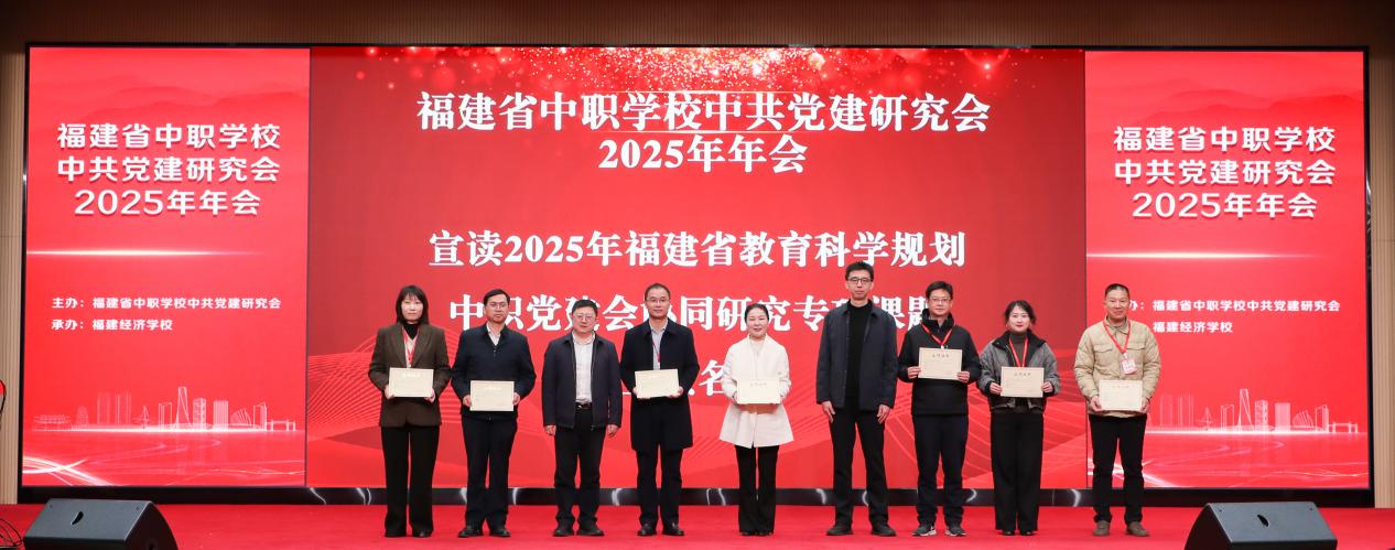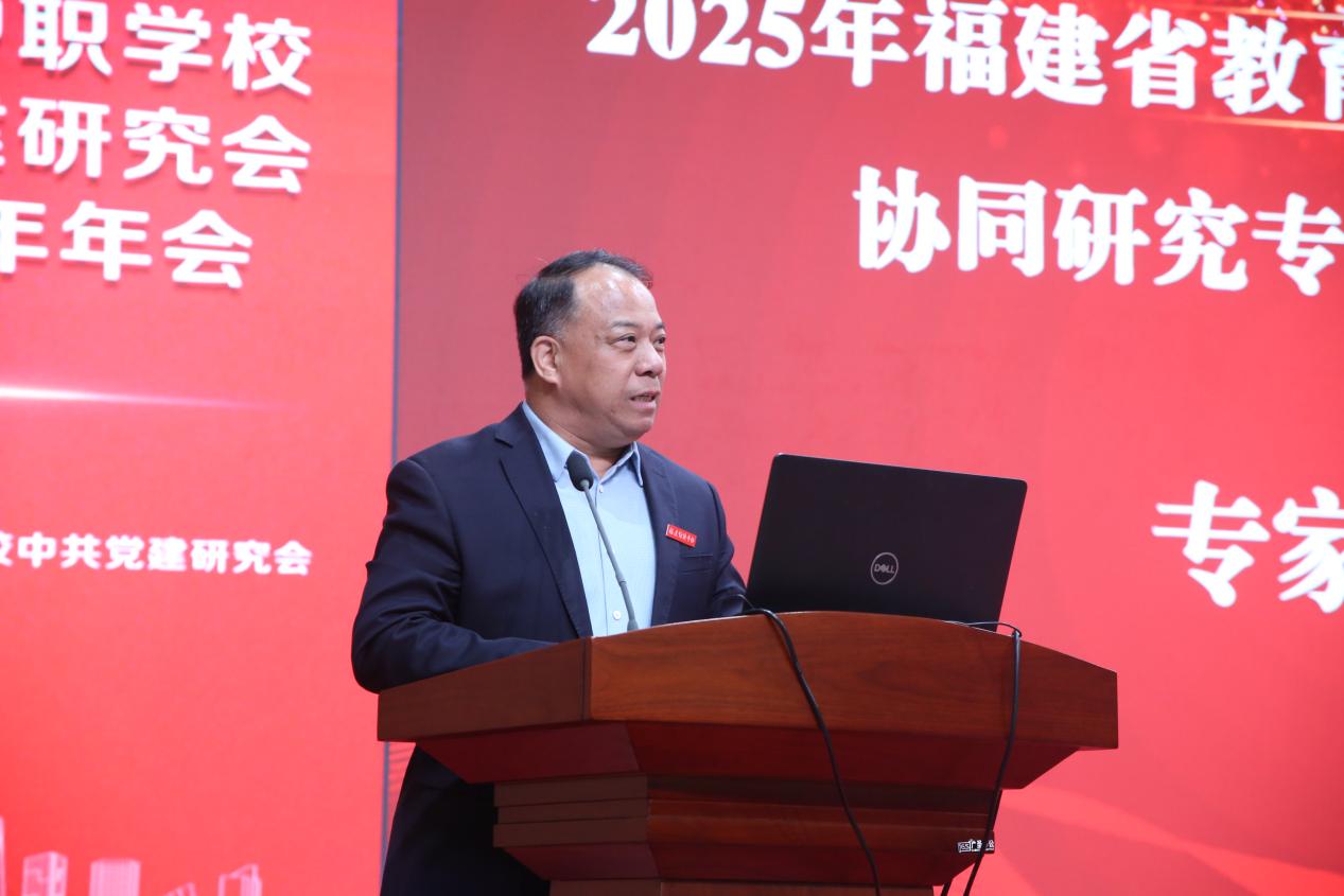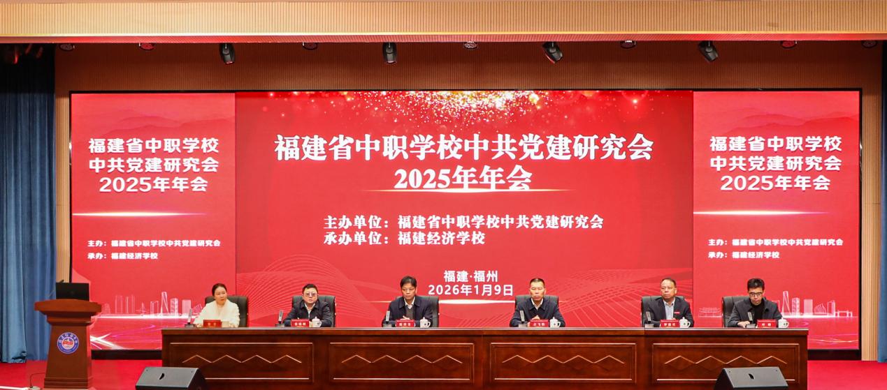 2026年1月9日,福建省中职学校中共党建研究会2025年年会在福建经济学校召开。省委教育工委副书记,省教育厅党组成员、副厅长陈洪尧,省供销社党组成员、副主任占飞豹出席会议。全省中职学校会员单位领导、党务干部代表以及省属中职学校思政教师代表,共计216人参加会议。福建省中职学校中共党建研究会会长、福建建筑学校党委书记郑芳主持会议。