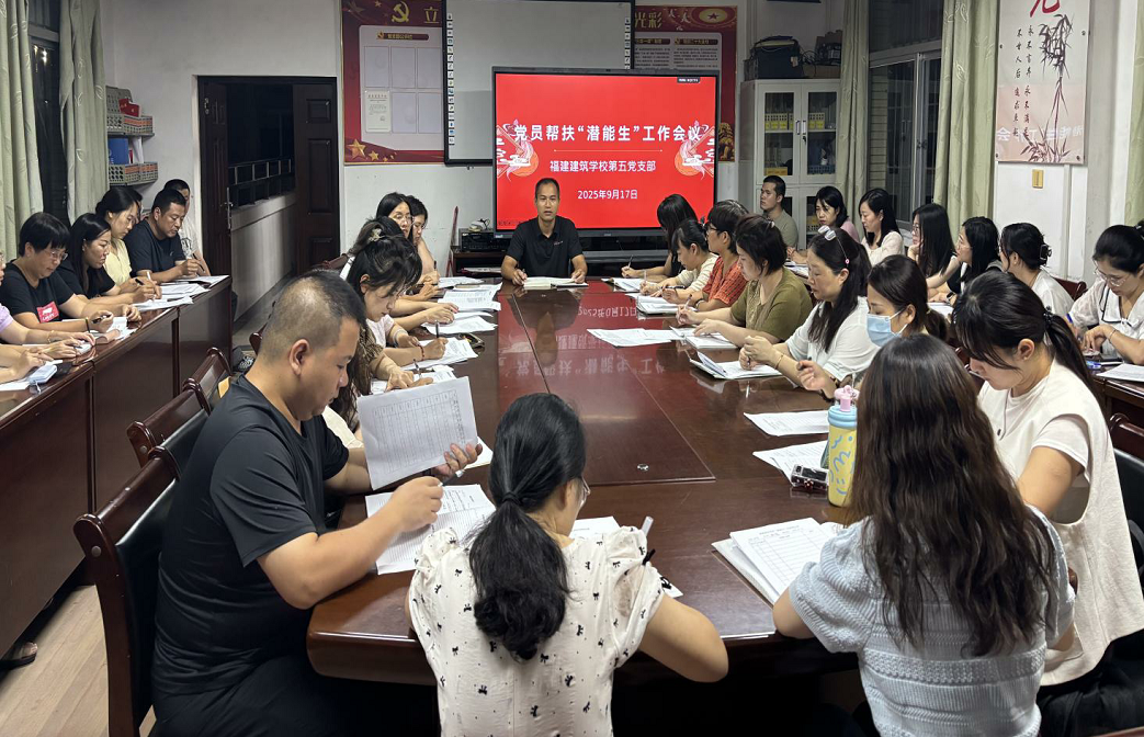 9月17日,福建建筑学校第五党支部召开党员帮扶“潜能生”专题工作会议。会议旨在落实立德树人根本任务,发挥基层党组织和党员作用,加强对学生的关爱与教育。支部书记李亚彬主持,支部党员、全体班主任及学生管理员参加。