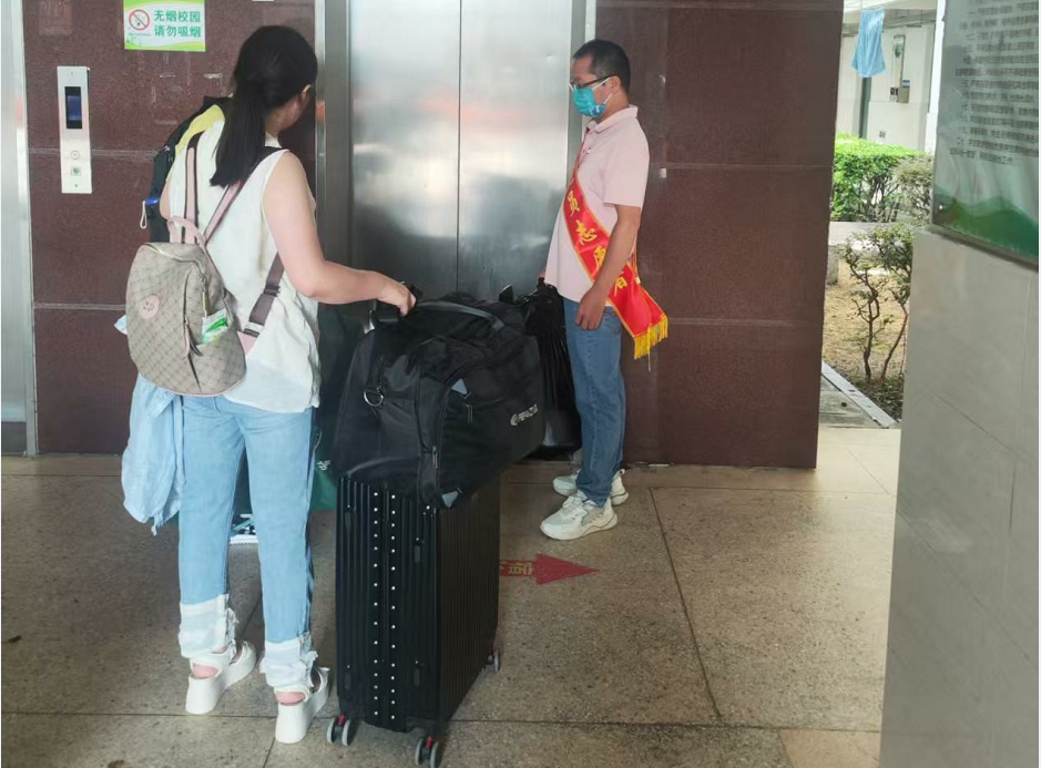 “同学,这边请,宿舍楼在前面右转”“你们先去办理注册,行李可以先寄存在这里”“家长请您放心,孩子在学校学习期间,有任何问题都可以联系我们”......迎新现场,党员志愿者们的身影活跃在各个角落,有的耐心解答新生关于入学手续和流程的疑问,帮助新生复印户口本等材料;有的主动帮新生搬运行李,介绍校园设施分布;还有的为家庭困难的新生详细讲解资助政策。第三党支部书记林荣发考虑到新生乘坐宿舍楼电梯的安全问题,专门派党员在电梯口设岗负责维持秩序。得知注册工作班主任岗位紧缺,第八、九、十党支部的党员教师郭为燕、董程程、蓝丽姗、许辰景、郑艳萍等主动担当,发挥自身专业优势协助学生科负责本专业新生注册工作。