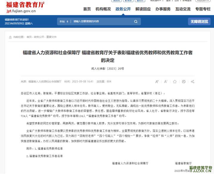金秋送爽,丹桂飘香,在第39个教师节来临之际,我校教师教育工作和师德师风建设取得新的突破,建筑专业教学部谢晖老师荣获福建省优秀教师的荣誉。希望全校教职工牢记“为党育人、为国育才”使命,积极探索新时代教育教学方法,不断提升教书育人本领,为培养德智体美劳全面发展的社会主义建设者和接班人作出新的更大贡献。