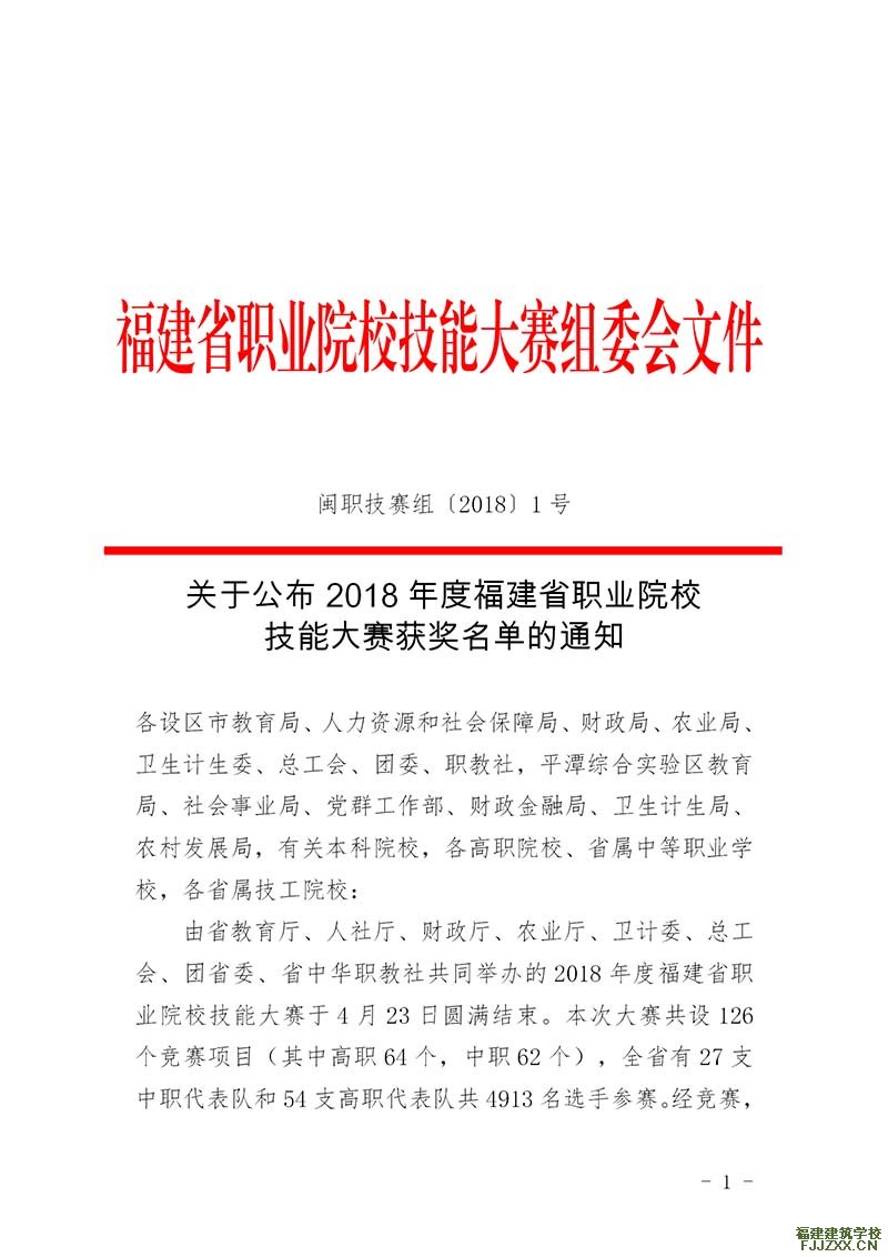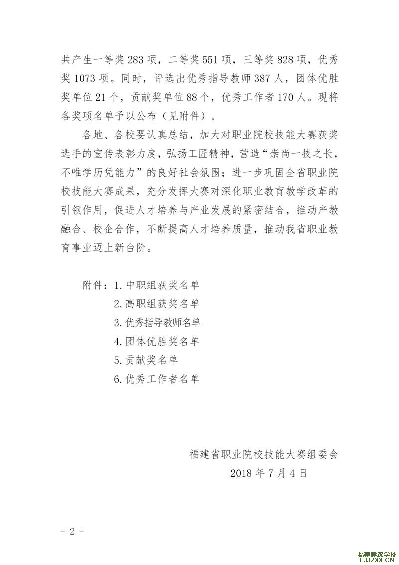 (五)2018年7月,学校被获得2018年度福建省职业院校技能大赛贡献奖