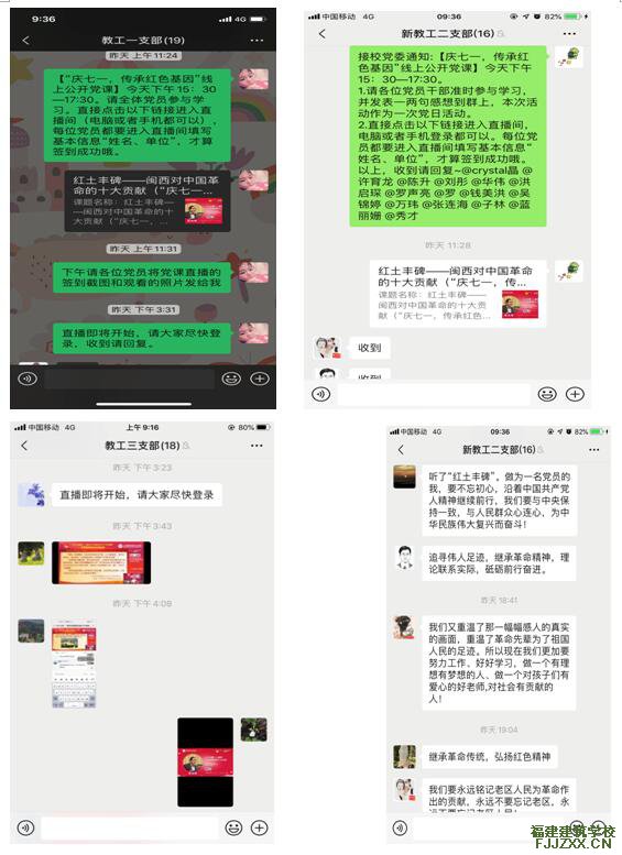 根据厅机关党委安排,我校党委于2020年6月28日下午组织全校在职6个支部96名党员学习“庆七一,传承红色基因”线上公开党课。本次公开党课的主要内容是红土丰碑——闽西对中国革命的十大贡献。党课采用线上直播方式,以“屏对屏”代替“面对面”,全体党员纷纷打卡进入直播间,参与互动学习。