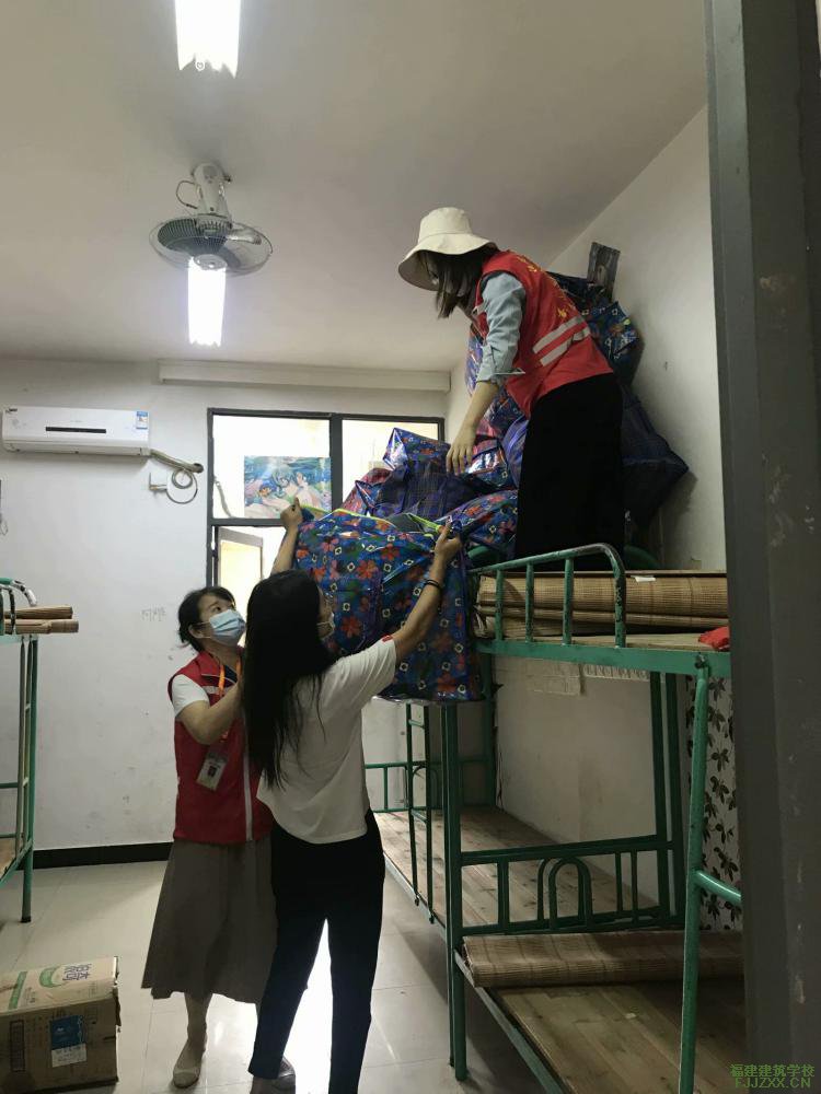 接着党员同志们进入宿舍有序开展工作,大家分工协作,有的做标记,有的整理床上用品,有的收拾洗漱用品,物品分类整理好后统一存搬运到指定宿舍内,摆放整齐。有的同学行李比较多,整理起来工作量不小,但是没有一位老师有丝毫怨言。他们尽职尽责,任劳任怨,不怕脏,不怕累,一丝不苟地把学生的物品一一整理好。在大家的共同努力下,30多间宿舍整理完毕。老师们汗流浃背,身上粘满了粉尘,看着整洁的宿舍露出了满意的笑容。