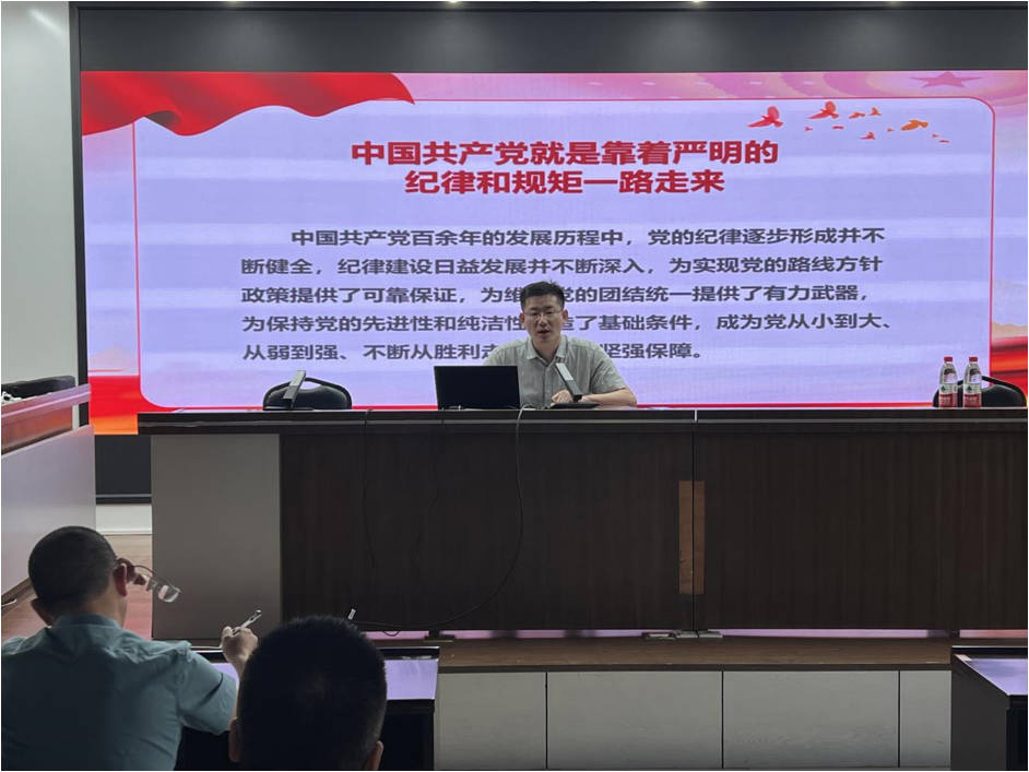 党课围绕“党史中党纪建设的历程”“党纪学习教育的要求、内容”等两方面展开,全面梳理了我们党开展纪律建设的历程和实践经验,深刻阐释了开展党纪学习教育的重要意义。