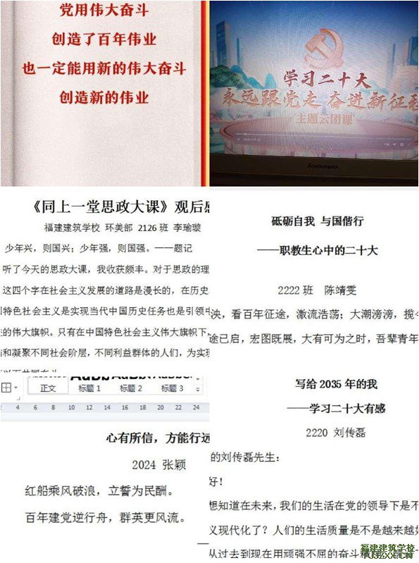 为贯彻落实为党育人、为国育才教育方针,我校认真学习、深入领会、大力宣传、全面贯彻党的二十大精神,深化当代中职生“奋进新征程,建功新时代”的主旋律意识,开展以“职教生心中的二十大”为主题的系列活动。