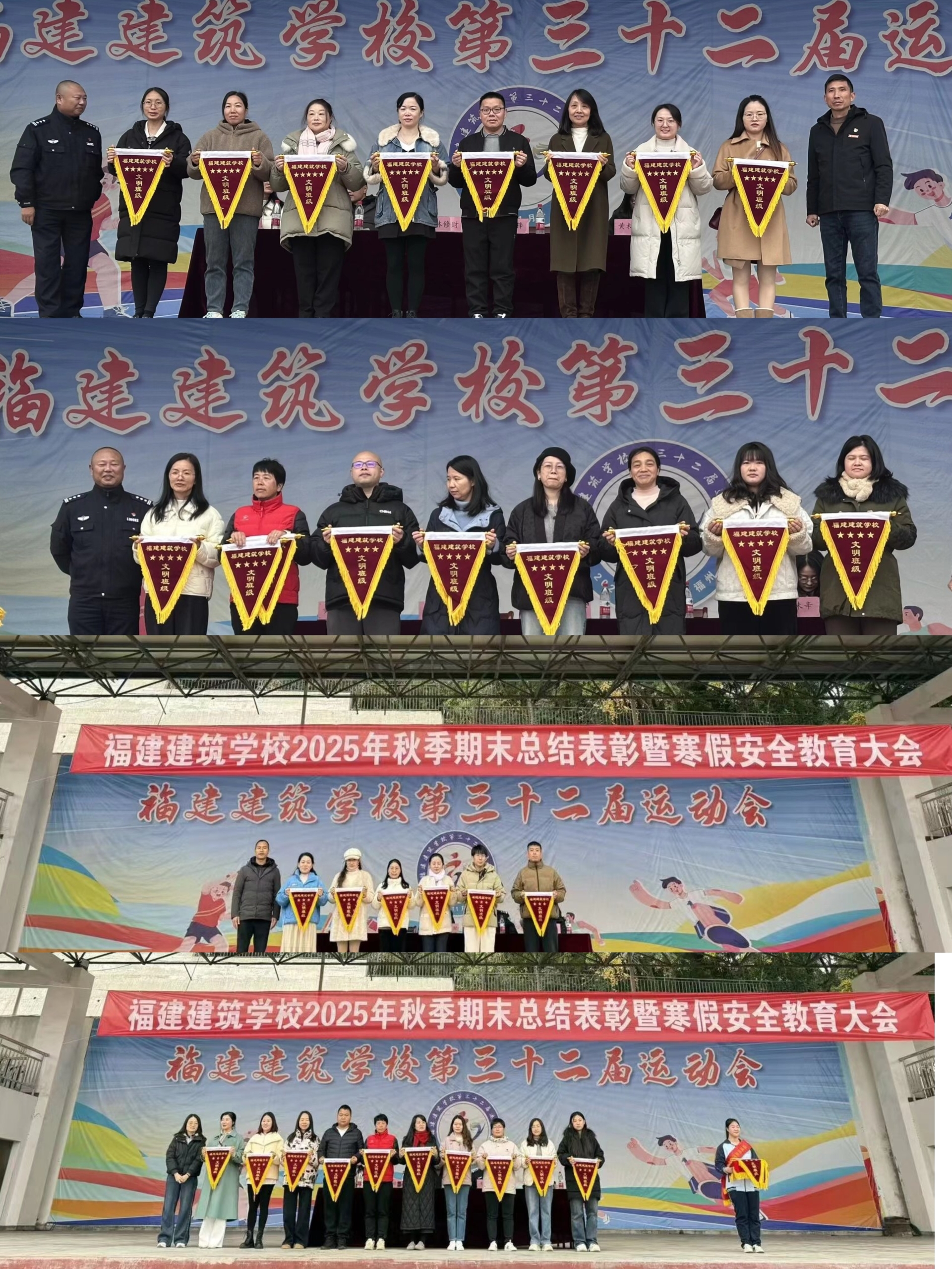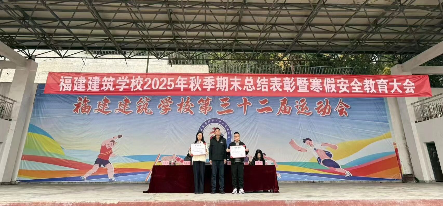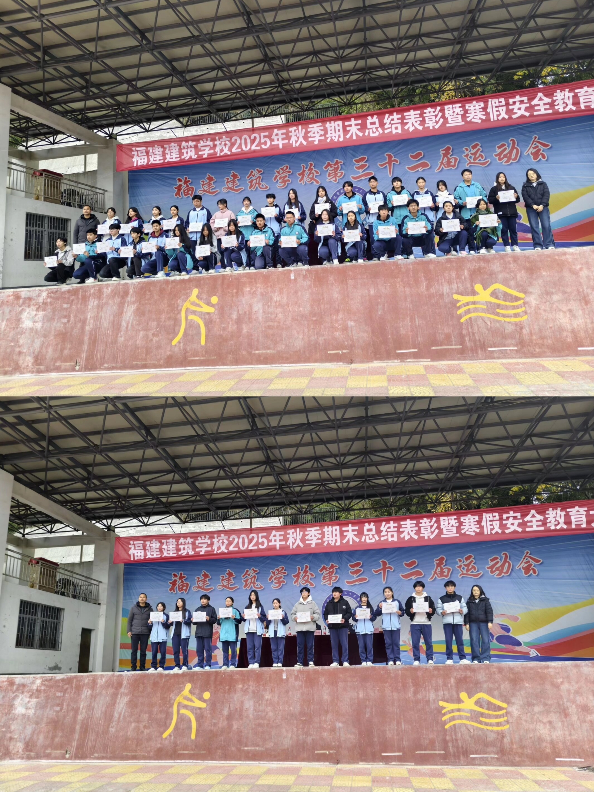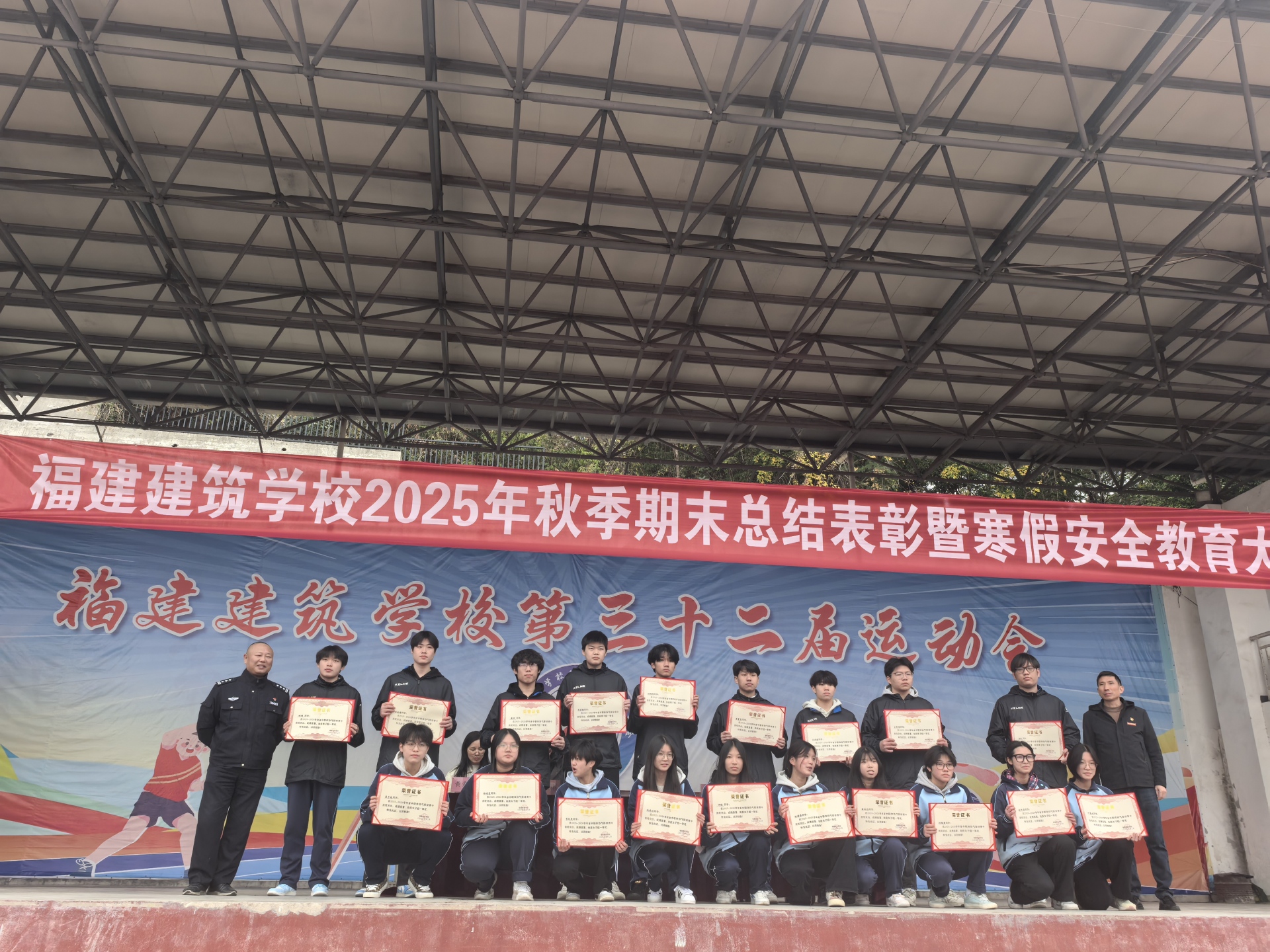 为全面总结本学期学校工作成果,表彰在学习、工作等方面表现突出的先进典型,激励全体师生奋勇向前,强化寒假安全教育,为师生度过一个平安、充实的假期保驾护航,1月23日,福建建筑学校召开2025-2026学年第一学期期末总结表彰暨寒假安全教育大会。校党委委员、副校长林修财,法治辅导员黄锋警官及相关科室负责人出席本次大会,学校全体师生参会。