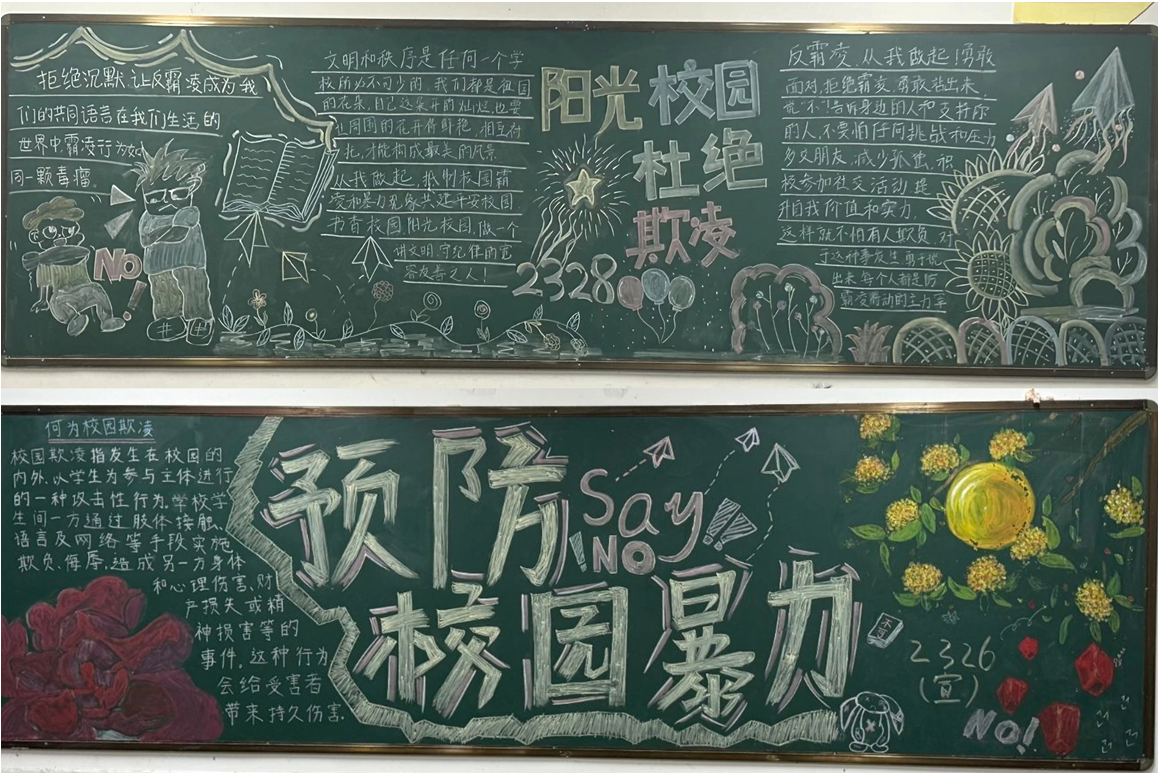 学校将“预防校园欺凌”作为开学第一课的重点内容。各班班主任结合真实案例,细致讲解校园欺凌的定义、表现形式及危害,通过互动讨论引导学生明确是非界限,掌握拒绝、应对校园欺凌的方法。同时,各班以“阳光校园·拒绝欺凌”为核心出专题黑板报,学生们通过图文创作传递团结友爱、互助包容的理念,让反欺凌意识融入班级文化,共同营造安全和谐的班级氛围。