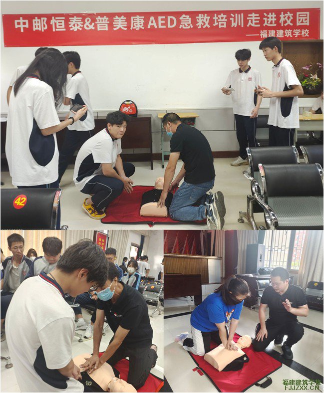 为弘扬“奉献、友爱、互助、进步”的志愿服务精神,增强师生安全意识,提高自救互救能力,中邮恒泰&普美康企业为我校免费设置两台AED机,并开展“应急救护”进校园活动,普及心肺复苏急救知识,开展急救技能培训。