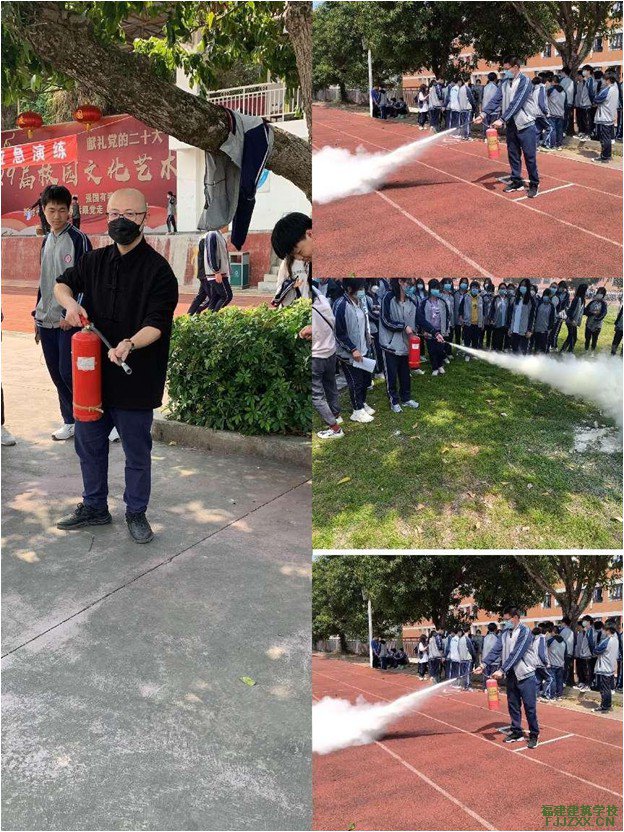应急疏散结束后,师生观摩学习了灭火模拟演练,池家吉老师向同学们普及了防踩踏、防火、防震等安全知识,认真示范了灭火器的正确使用步骤和要领。随后,各班班主任带领学生前往指定区域进行灭火体验,迅速有效完成灭火操作,熟练掌握灭火技能。
