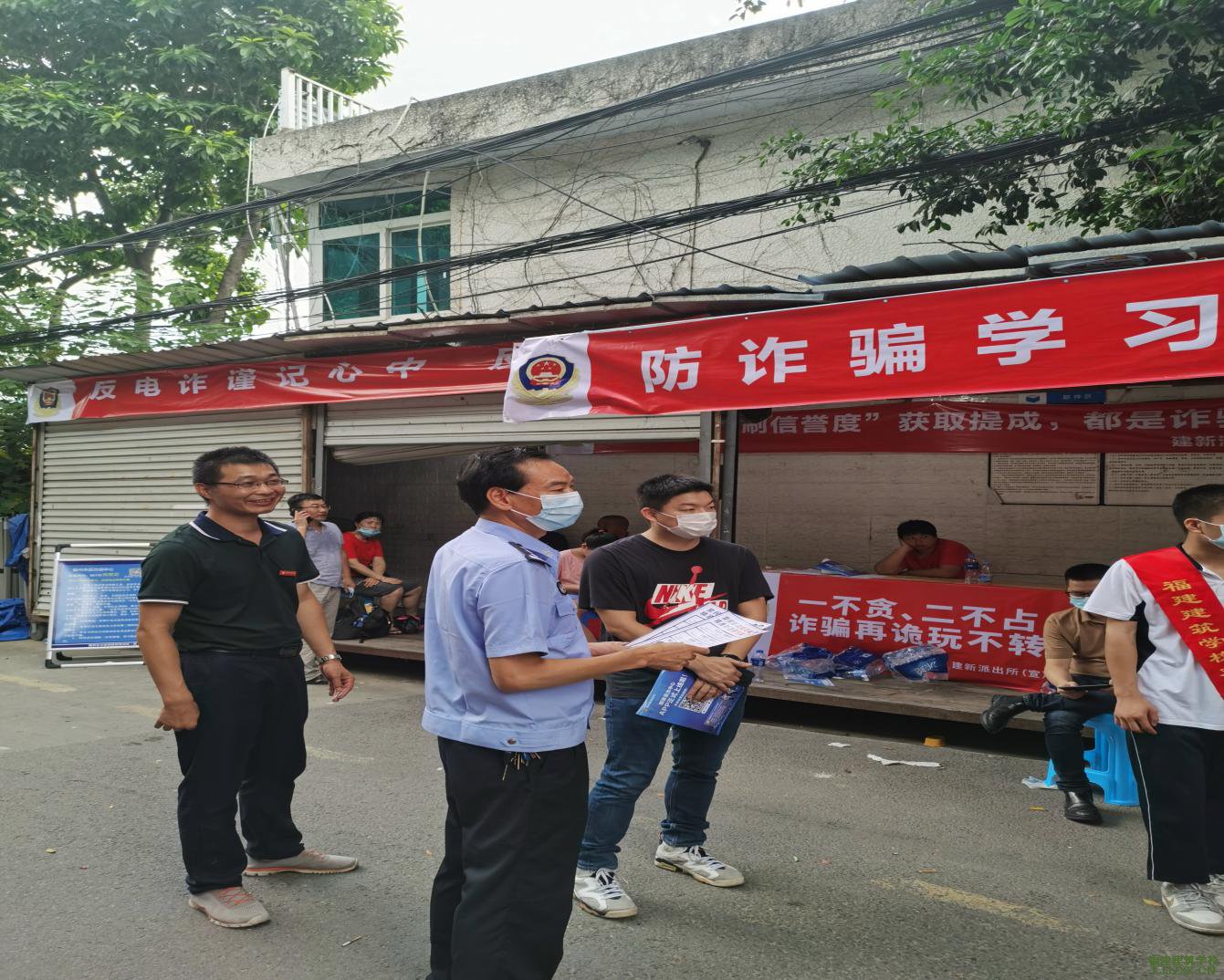 建新派出所唐警官为21级新生发放预防诈骗宣传单