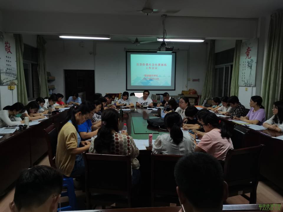 活动前,我校学生保卫科认真研究部署、精心策划制定《福建建筑学校2021年反恐防暴应急处置演练方案》,成立了演练领导小组,演练小组由师生组织组、疏散防护组、应急处置组、医疗救护组、心理疏导组等7个小组组成。演练前召开预备会,要求演练活动做到分工明确、责任落实、演练逼真。各班班主任也提前对学生进行反恐防暴安全宣传教育,确保演练活动安全有序开展。