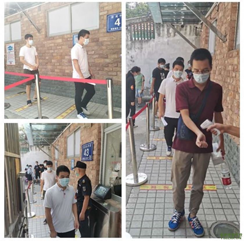 师生佩戴口罩,按照前后间隔一米列队校门口外等候,按照工作人员的引导测量体温,并向工作人员出示八闽健康码,测试合格方可进校。