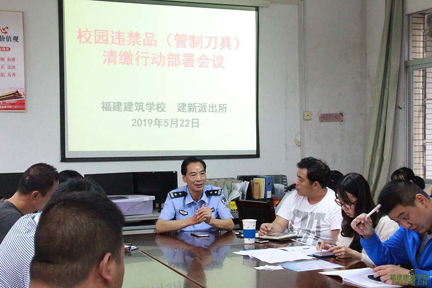 为了进一步加强校园安全管理,切实维护学校良好的治安秩序,防止校园人身伤害案件的发生,保护广大师生生命和财产安全。2019年5月22日下午,福建建筑学校邀请建新派出所民警共同对学生宿舍进行管制刀具突击大检查,并对管制刀具及品进行清查收缴工作。