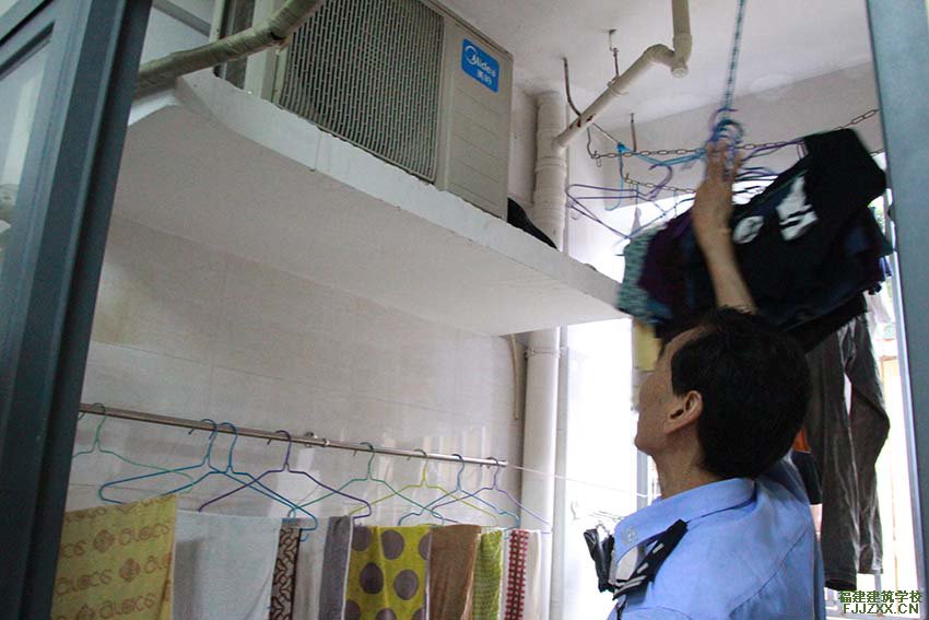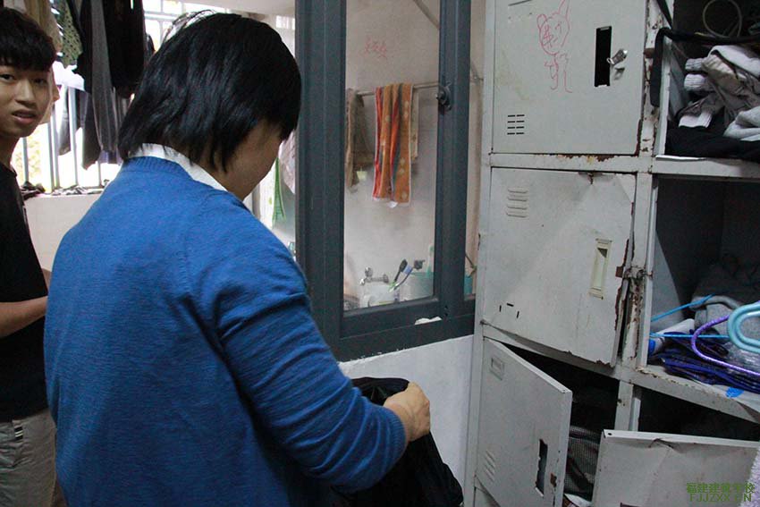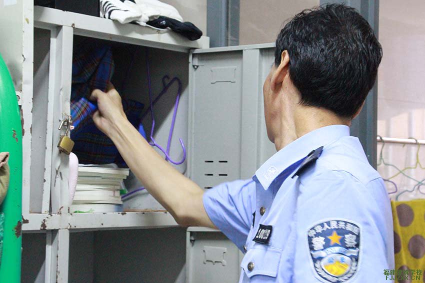 建新派出所民警、学校法制辅导员唐继明警官检查学生宿舍