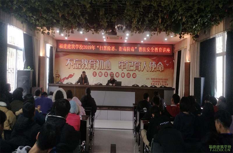 为了提高学生法律素质和安全防范意识,增强学生扫黑除恶专项斗争的责任感和使命感,提升学生的禁毒意识及自觉抵制毒品侵袭的能力。2019年1月2日上午10:00,我校在多功能厅举办扫黑除恶、禁毒防毒专题教育讲座,讲座由福州建新派出所民警林健同志主讲,学生保卫科杨慧婷科长出席大会,大会由学生保卫科李亚彬老师主持。