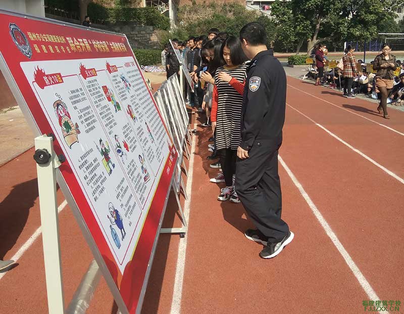 紧接着,建新派出所潘仰兴副所长就“反恐、防火、防盗骗”的活动主题给我校全体学生进行教育知识的讲座,从一些实际案例等方方面面给全校师生上了一堂校园安全教育课。潘仰兴副所长说:“通过做校园安全讲座,给师生提醒及相关案例的警示教育,对于维护校园安全还是非常有用的,通过现场模拟和实际案例给学生们敲敲警钟,也有利于他们在真的遇到这些情况时也能会更好的应对。”随后,学生们在建新派出所民警的指导下观看了校园安全教育的展板,力求在大事小事上都给学生灌输“反恐、防火、防盗骗”的思想,营造一个安全的学习环境,保障学生健康成长。