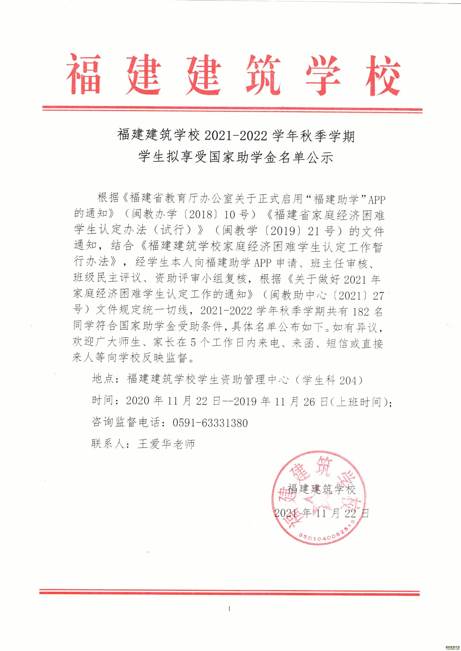 喜报:福建建筑学校五名学生荣获2021-202学年度国家奖学金