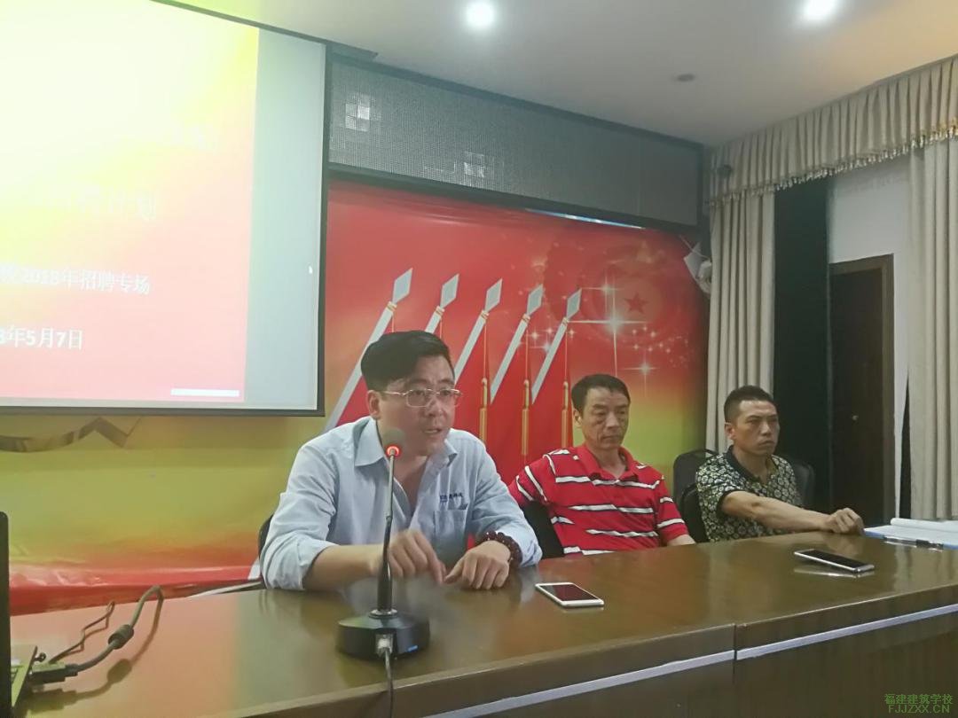 2018年5月7日16时,我校2019届毕业生第二场校园专场招聘会——福建天普发展集团有限公司、福建中南电建(装配)公司在校三楼多功能厅精彩开讲,此次宣讲会吸引了建筑类近200名学生参加,场面很是热闹。