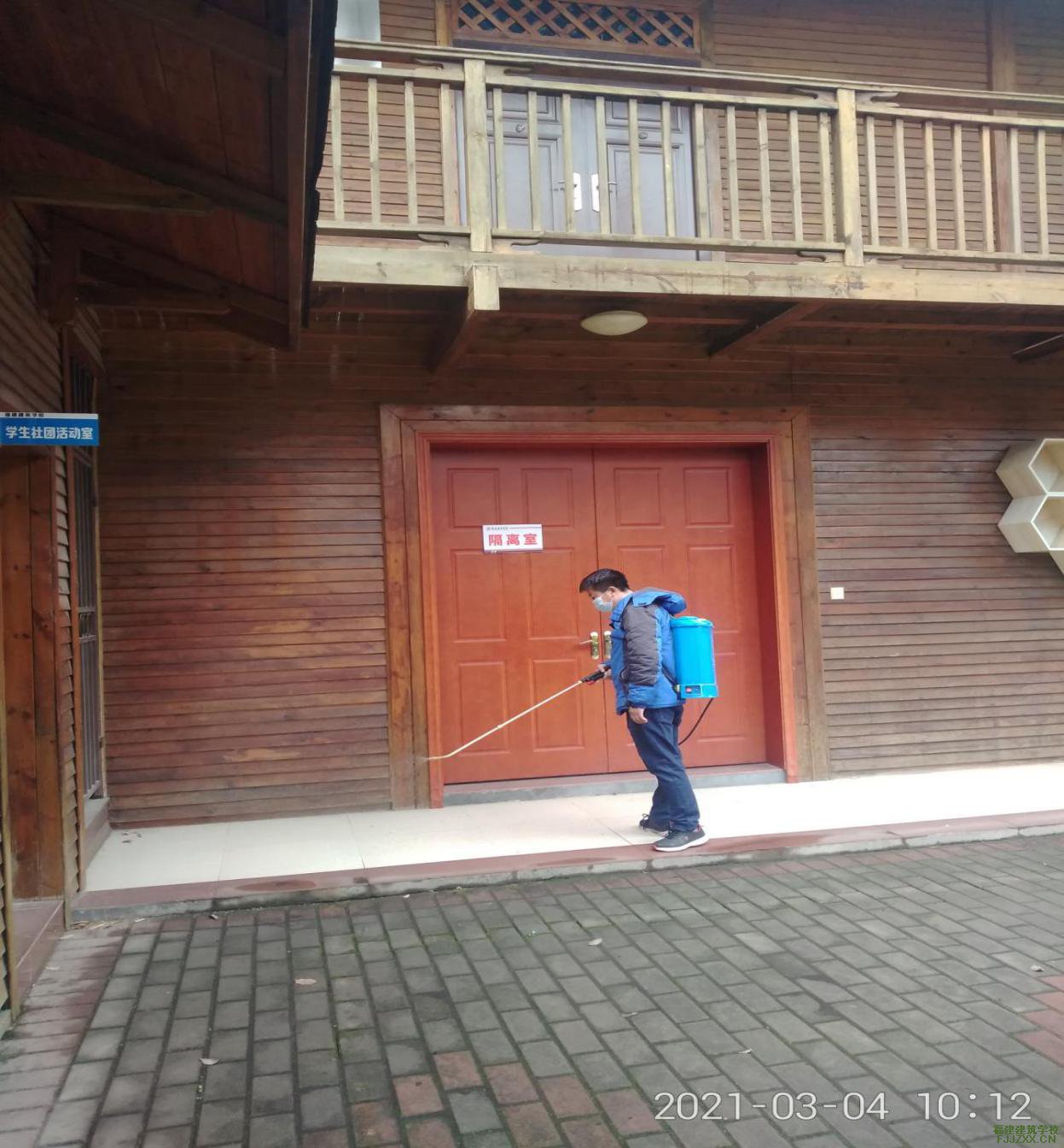 3月4日,在我校总务科林荣发科长的安排部署下,重点对教室、学生宿舍、办公室、食堂、超市、隔离室以及校园公共区域等地进行全面消杀,确保校园环境横向到边、纵向到底彻底清理,同时严格把控食堂、超市以及校园快递站的健康管理和疫情防控工作。