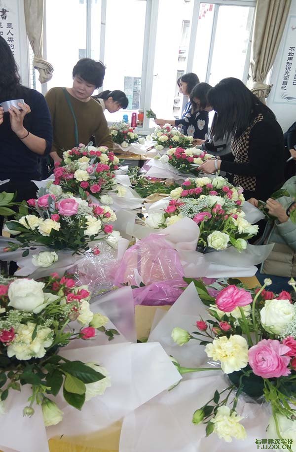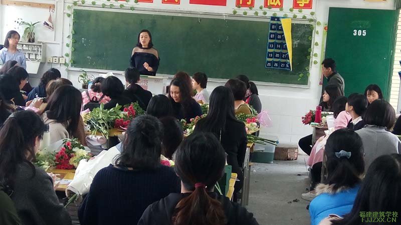 为了庆祝“三八国际妇女节”,2018年 3月16日下午,由福建建筑学校工会、妇委会联合组织的插花艺术培训在学校教学楼305教室举行。学校特邀方雪云老师为女教职工开设花艺和插花艺术技巧讲座,学校副校长郑芳、工会副主席张生萍、财务科长李艳玲、质量评估办主任徐健康与全校70多名女教职工共同参加了此次培训活动。