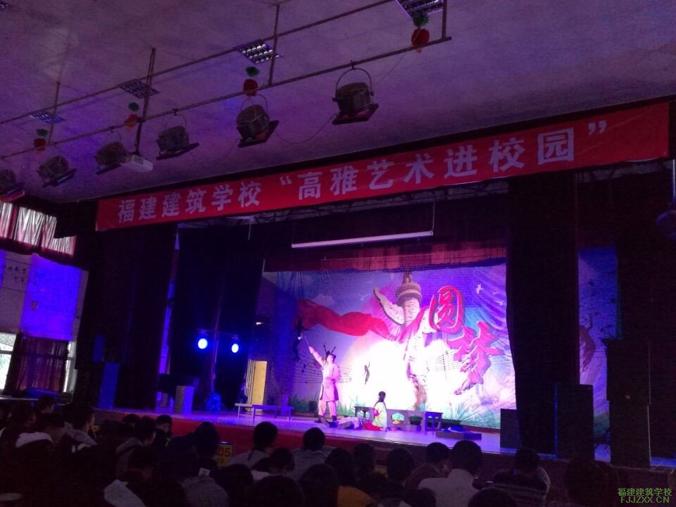2月22日晚,由教育厅、文化厅联合主办的“高雅艺术进校园”活动走进福建建筑学校,由福建省人民艺术剧院的演员们演出的话剧《我爱桃花》为全校师生带来一场视听盛宴。此剧是“中国第一编剧”邹静之创作的第一部话剧剧本,十年来在国内外公演了1000余场,以突出“唐风”的唯美气质和极强的文学性征服了观众。