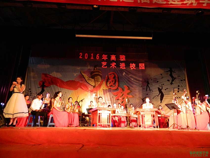 明亮上扬的音调呈现出欢乐、昂扬、奔放的情绪,锣、鼓、钹、木鱼等打击乐器的节奏烘托,让人耳目一新。在热烈欢腾、昂扬激奋的情绪中,一首耳熟能详的《金蛇狂舞》拉开了福建建筑学校“高雅艺术进校园”暨闽江师范高等专科学校繁星艺术团走进福建建筑学校专场演出活动的序幕。