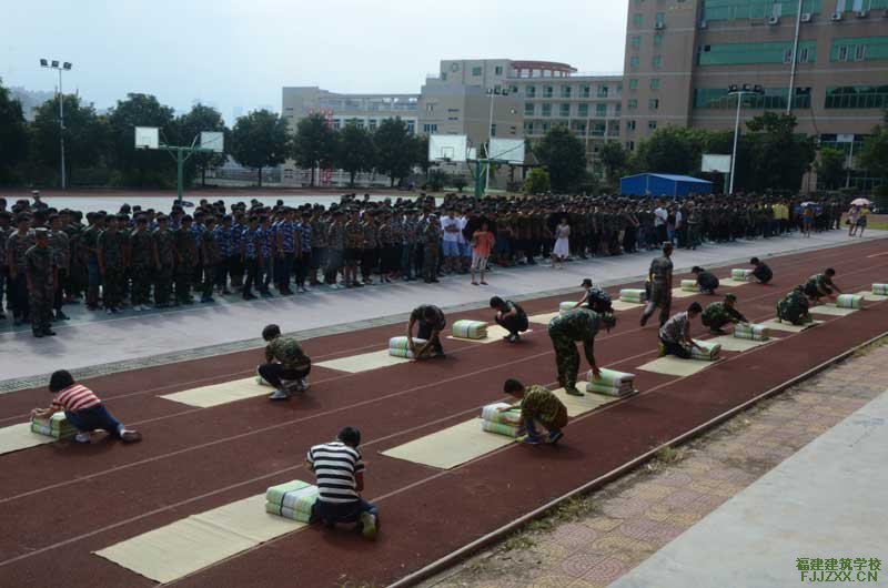 最后,福建建筑学校许育龙副校长进行了总结讲话,他首先肯定了同学们在此次军训中取得的优异成绩,接着向五天来一丝不苟训练的部队教官们表示了感谢,最后许副校长希望在今后的学习和生活中同学们能保持军训中不怕苦不怕累的精神,坚定执着为班级争光,为学校争光!