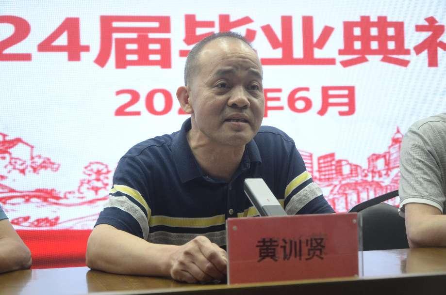 教务科黄训贤科长对毕业生三年学习情况做了总结并提出三点期望:一是学会感恩,懂得包容,二是学会独立面对未来,三是学会勇于担当。