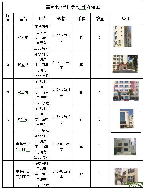 因我校建筑年限已久旧楼体字多数已损坏,现我校决定对校园内的功能大楼楼体字进行重新安装,欢迎符合资质条件的公司前来投标。