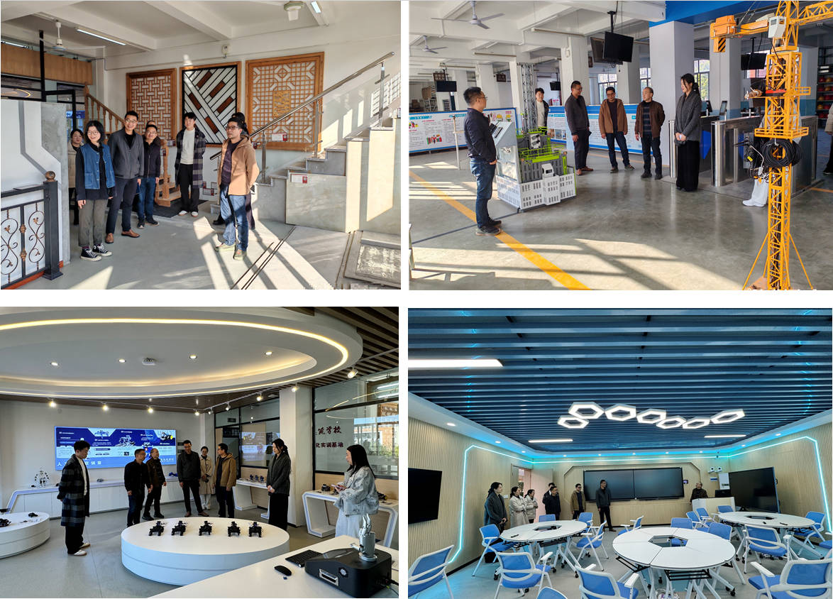 会后,调研团队实地考察了学校智慧工地实训室、人工智能实训室等实训基地。双方围绕实训场地建设与教学实践,就课程思政元素融入专业教学、人工智能技术赋能课堂教学等议题深度研讨。