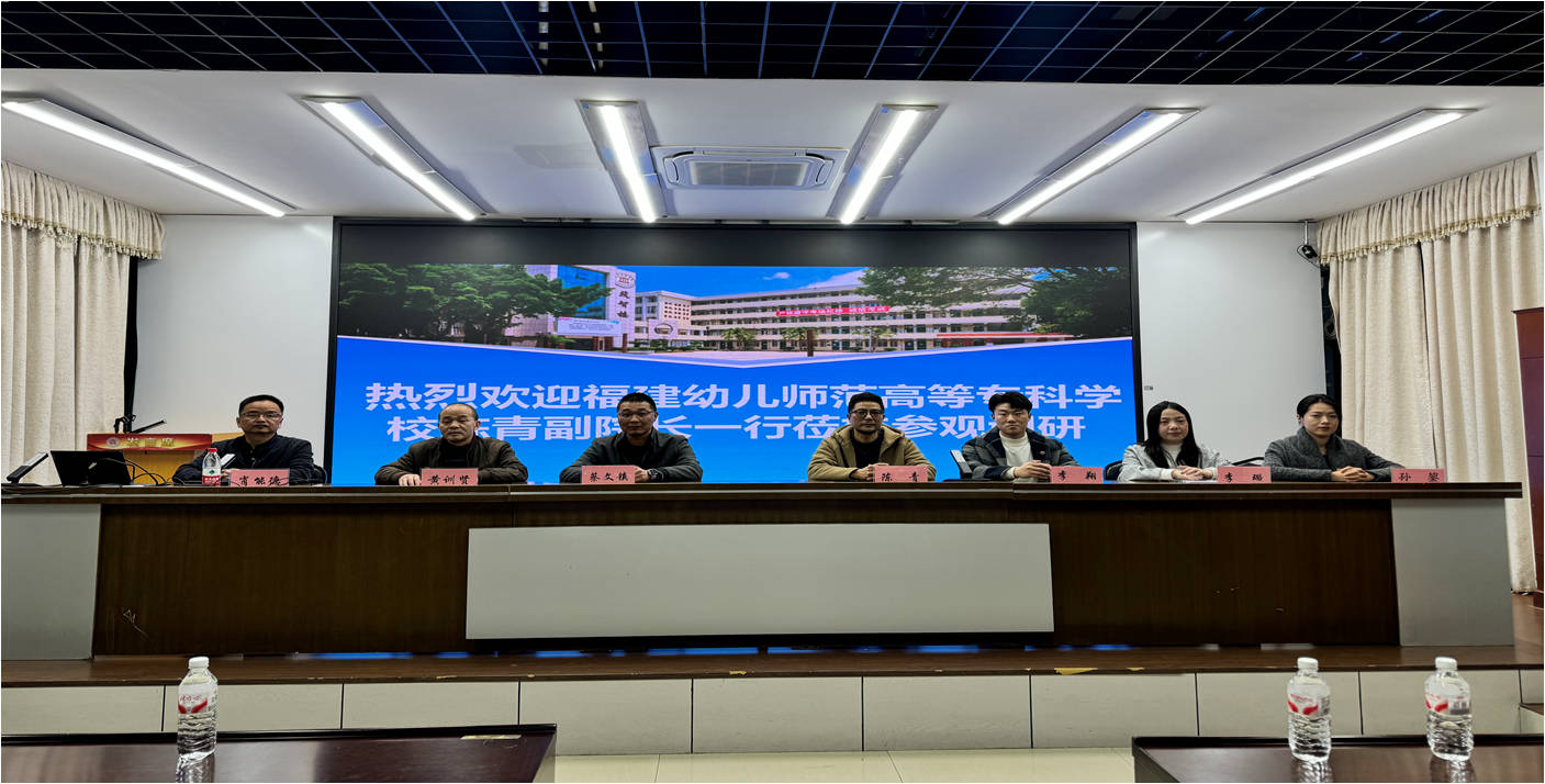 1月14日下午,福建幼儿师范高等专科学校艺术教育学院副院长陈青一行4人到福建建筑学校参观调研。福建建筑学校党委委员、副校长蔡文镇及相关部门负责人陪同调研。