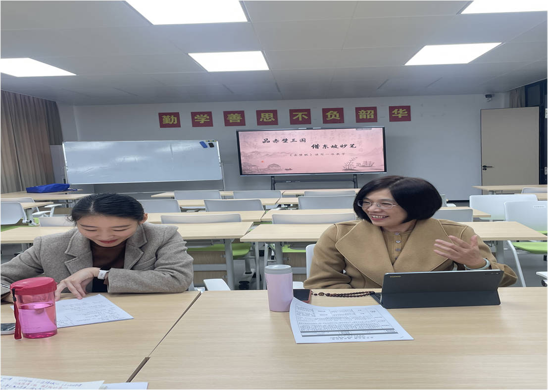 活动中,叶小舟老师展示了一堂以学生为中心的汇报课,运用启发提问、合作探究等方式激发学生思维,体现其参与省级培训后对新理念的积极实践。王少莹副教授进行现场点评,认为课程设计巧妙、文化底蕴深厚,并就优化教学、提升实效提出建议。